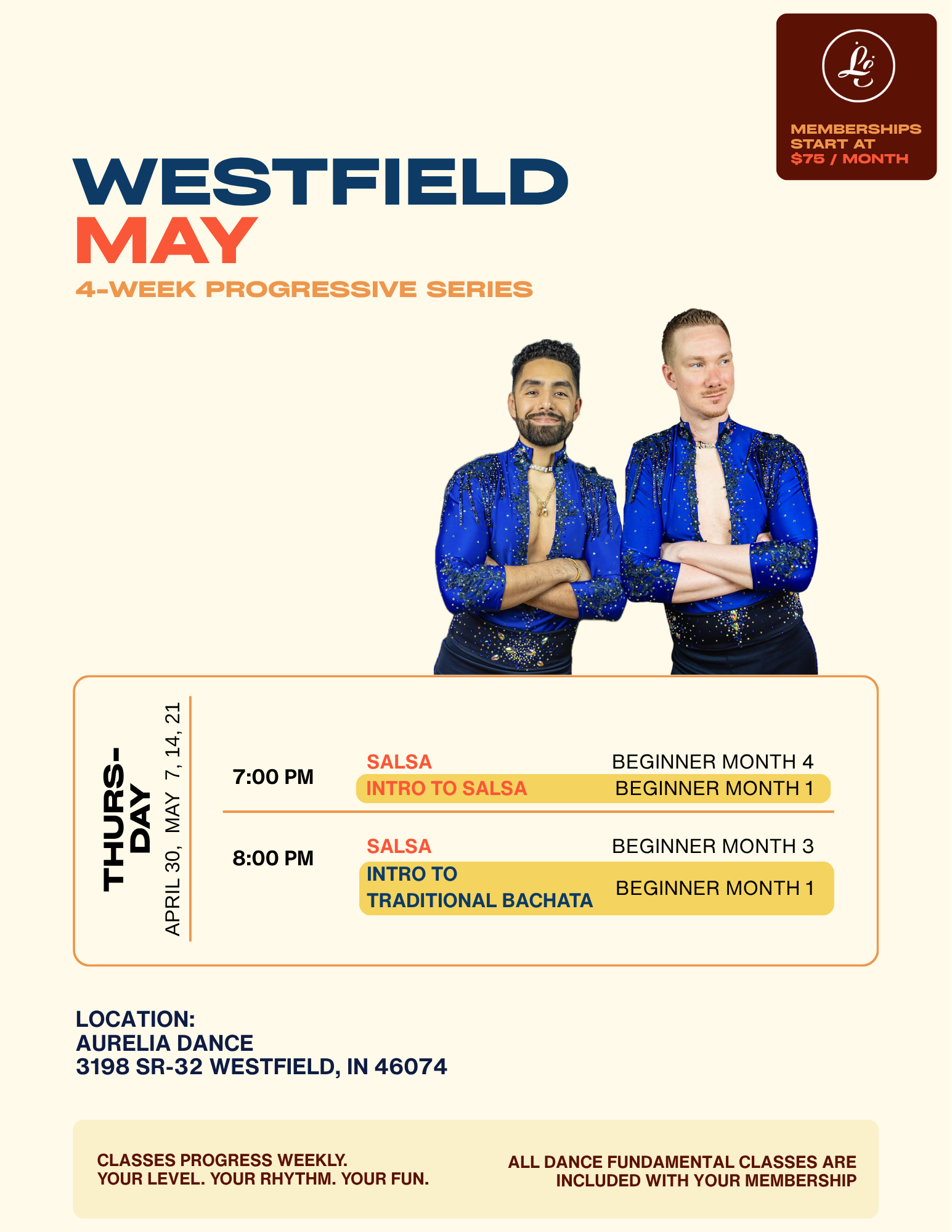 Classes are taught in a group circle and partners are routinely rotated (unless otherwise requested) to ensure everyone has an opportunity to dance.